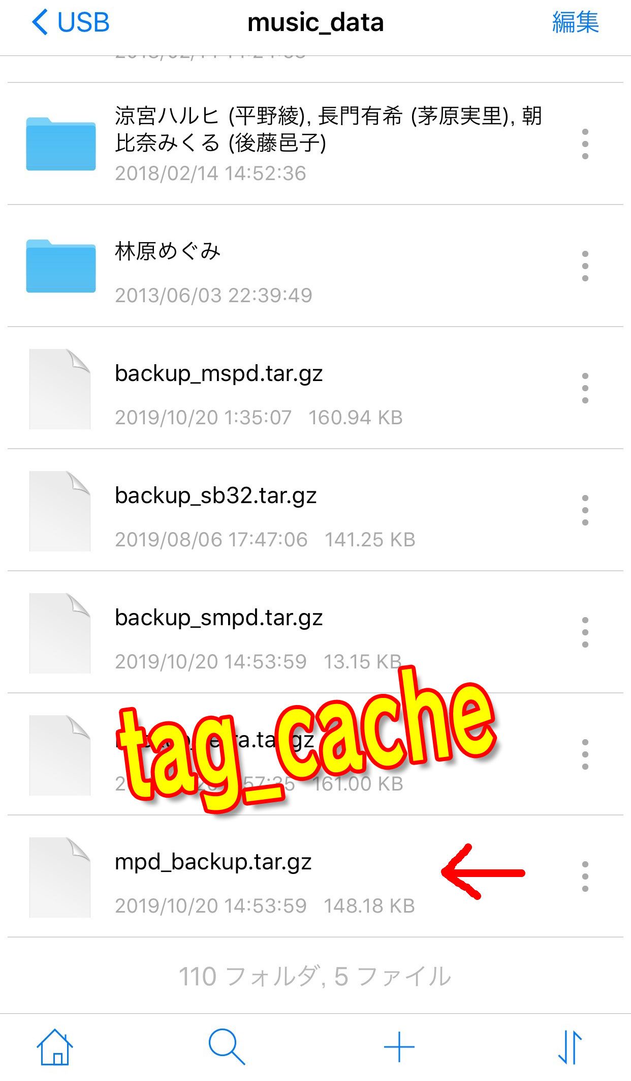 そして図の一番下に見えているのは、tag_cacheのバックアップファイルで...