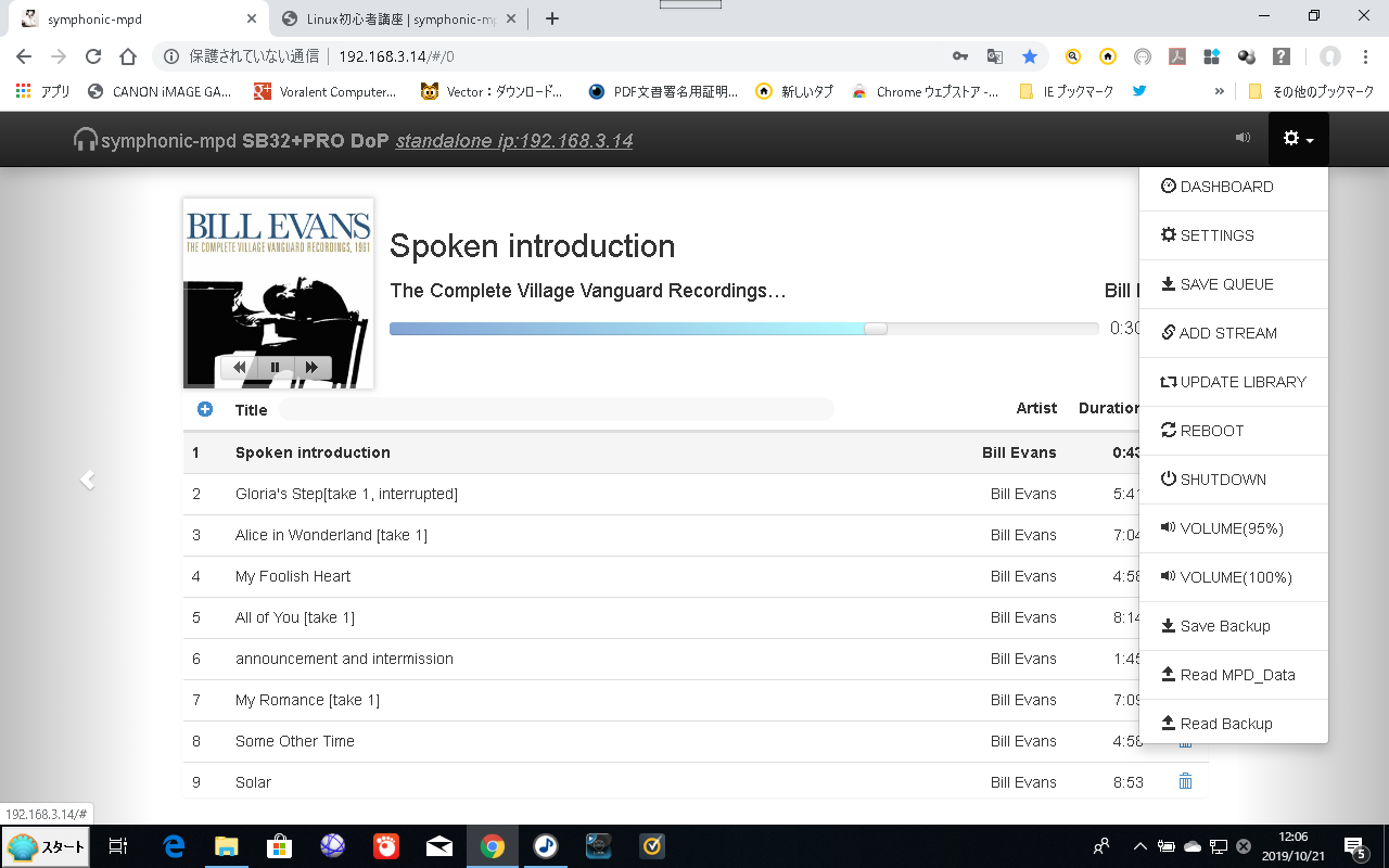 これも“Read MPD_Data”を選択することで“./util-restore.sh --tag_cache”が実行され、勝手に楽曲データベースやプレイリストがバックアップファイルから読み込まれるようになっています。
